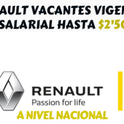 RENAULT VACANTES VIGENTES RANGO SALARIAL HASTA $2’500.000
